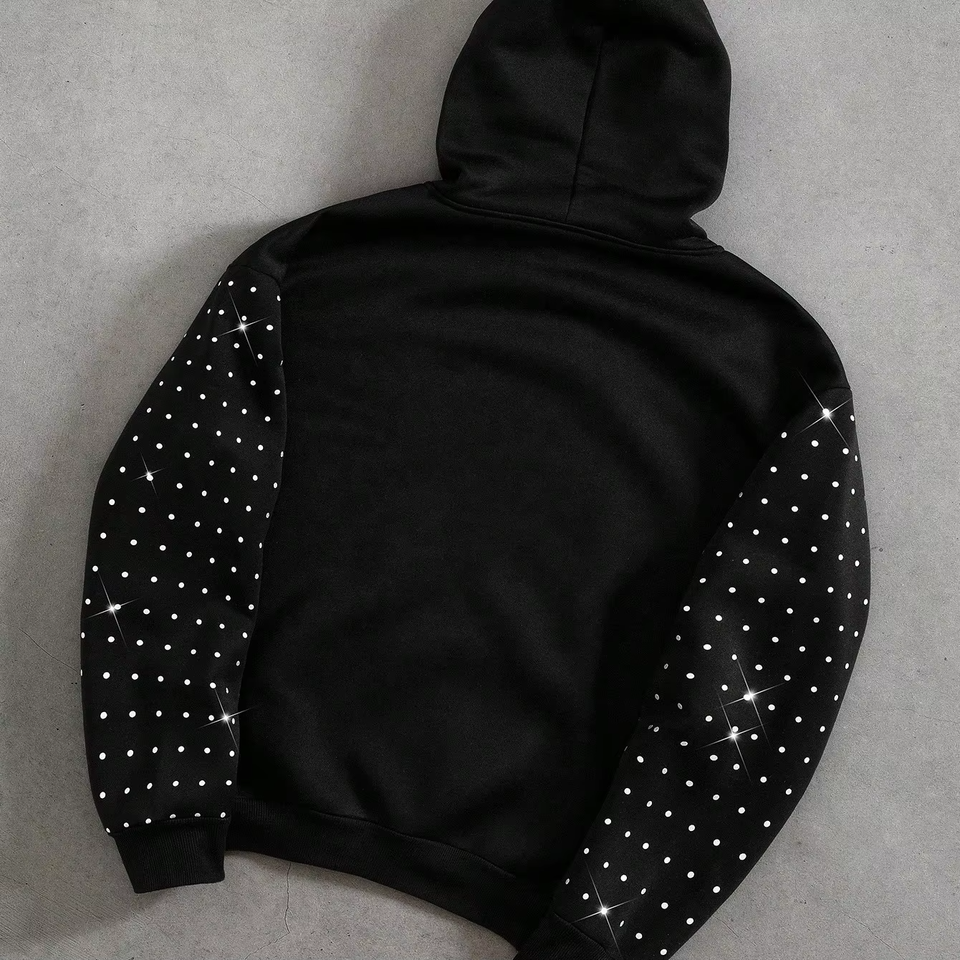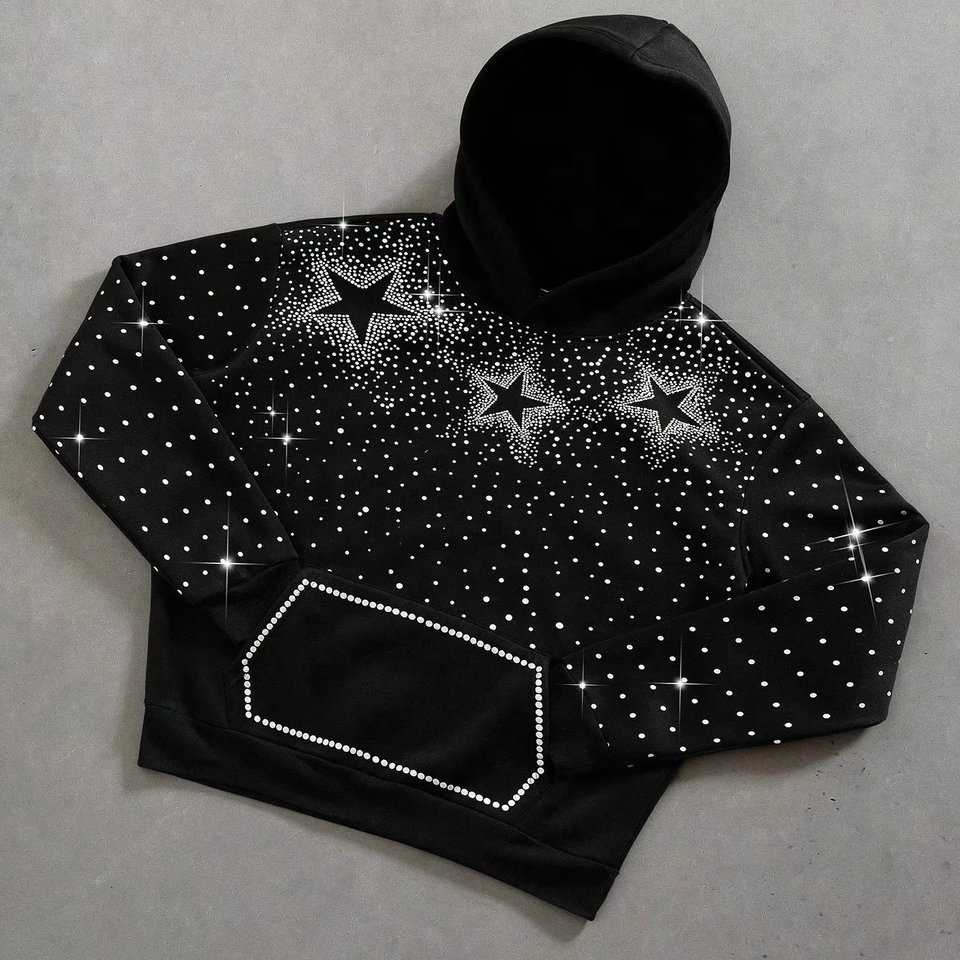 เสื้อฮู้ดดี้โอเวอร์ไซส์แบบใหม่ปี 2025 ประดับด้วยคริสตัลหรูหรา สไตล์วินเทจ ล้างสีแบบแอซิดวอช สำหรับผู้ชาย