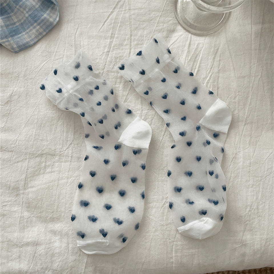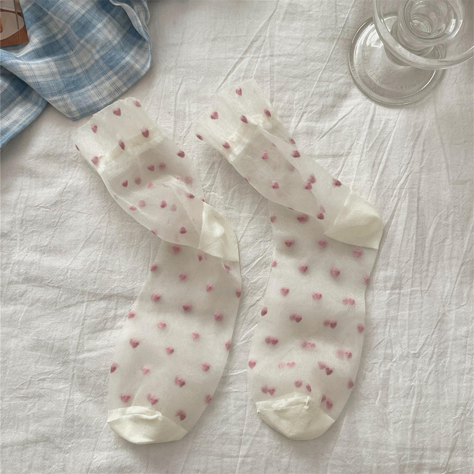 ถุงน่องแก้วญี่ปุ่นสำหรับผู้หญิงใหม่2025หวานและระบายอากาศได้ถุงเท้าสวมด้านนอกสีแดงน่ารัก