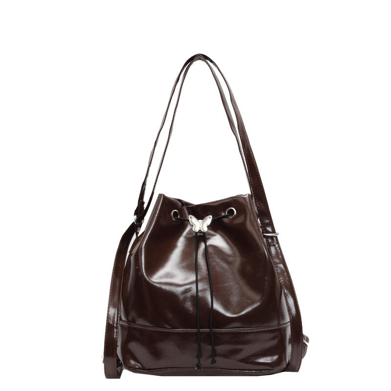 2025ใหม่กระเป๋าโท้ทรูปลิ้นจี่สีน้ำตาลอ่อนกระเป๋าถือเรียบง่ายใช้ได้ทุกวัน