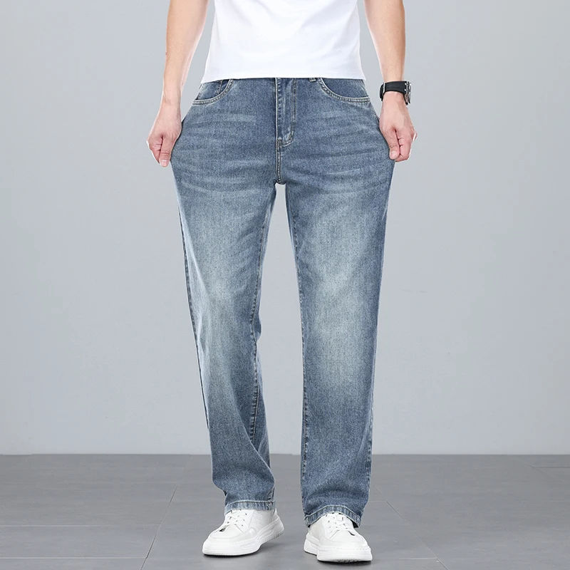 กางเกงยีนส์ผ้ายีนส์ผ้า Cordura สำหรับผู้ชาย, กางเกงยีนส์ขาตรงสไตล์ธุรกิจลำลองเบาใส่สบายระบายอากาศได้หรูหรา2025ใหม่ฤดูร้อน