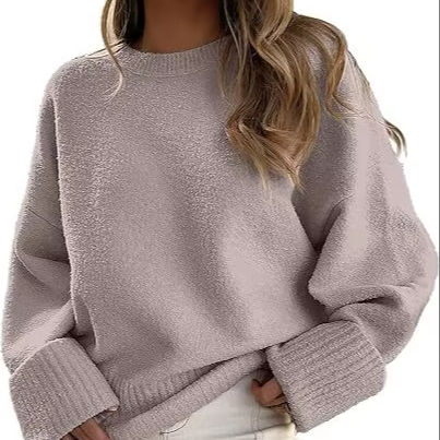 สเวตเตอร์ถักแบบสวมหัวคอกลมทรงหลวมสำหรับผู้หญิงใหม่ฤดูใบไม้ร่วงและฤดูหนาว2025