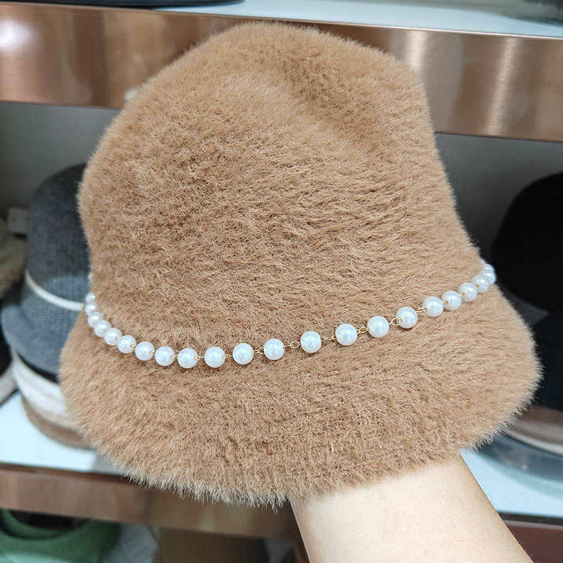 2025 new women winter faux fur knitted crochet beanie hat fuzzy fluffy bucket hat with pearls cozy stylish accessory essential