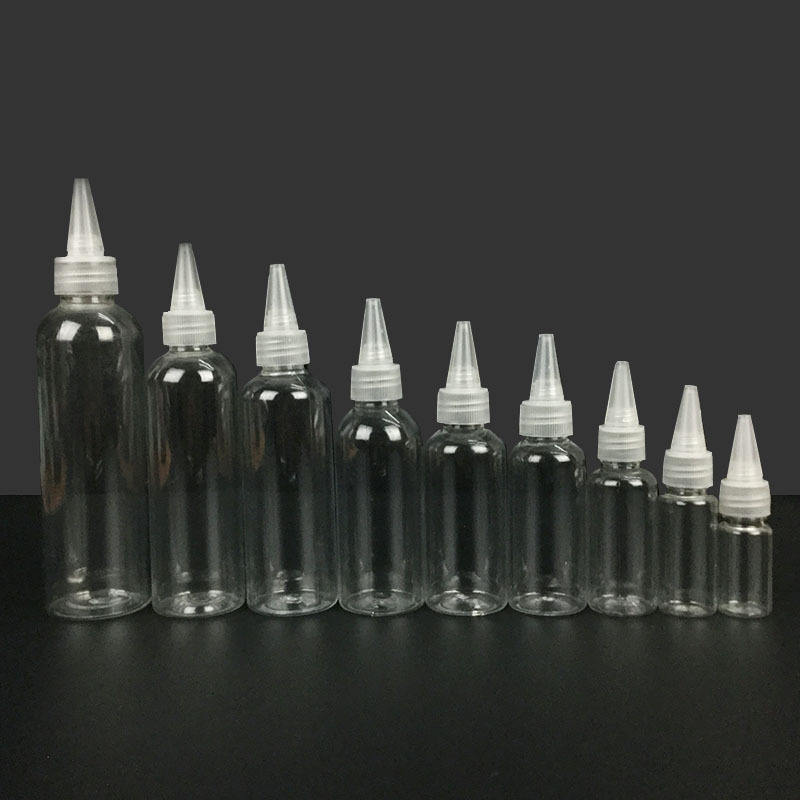 หัวฉีดน้ำมันใส่ผมแบบพกพาขนาดเล็ก ทำจากพลาสติก PET ปลายแหลม สำหรับขวดบีบพร้อมฝาเกลียว พิมพ์ลายสกรีน ตามเทรนด์ยอดนิยมปี 2025