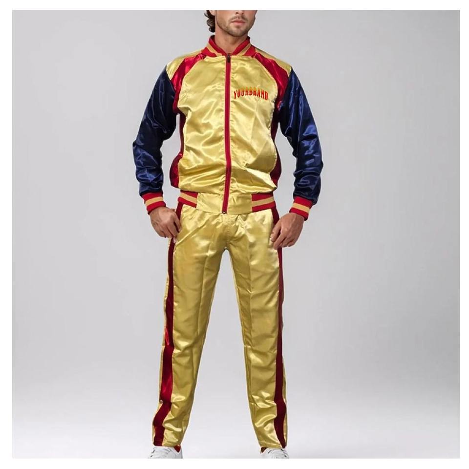 ชุดวอร์มผ้าซาตินไนลอนสำหรับผู้ชายชุดวิ่งออกกำลังกายสีพื้นมีซิปออกแบบได้ตามต้องการสำหรับฤดูหนาว