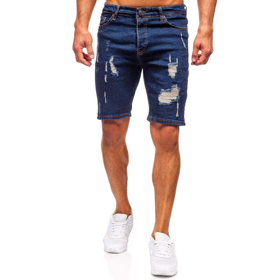 กางเกงยีนส์ขาสั้นทรงหลวมสำหรับผู้ชายกางเกงขาสั้นผ้ายีนส์ปักลายแบบกำหนดเองระบายอากาศได้ดี2025