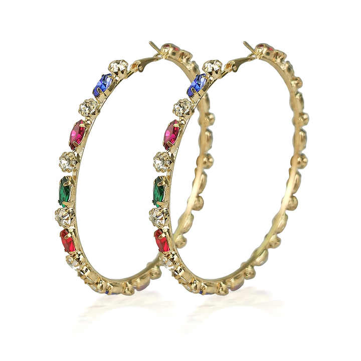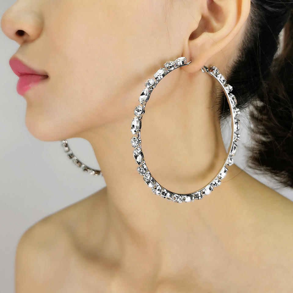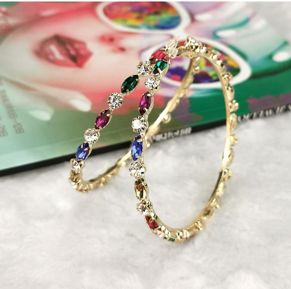 ต่างหูห่วงคริสตัลชุบทองขนาดใหญ่สำหรับผู้หญิงสไตล์ริฮันน่า2025New ทันสมัย