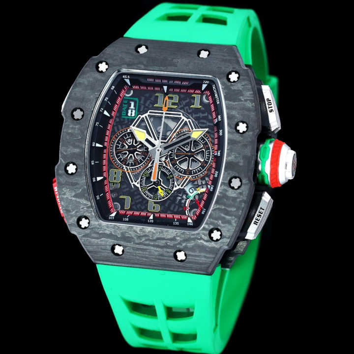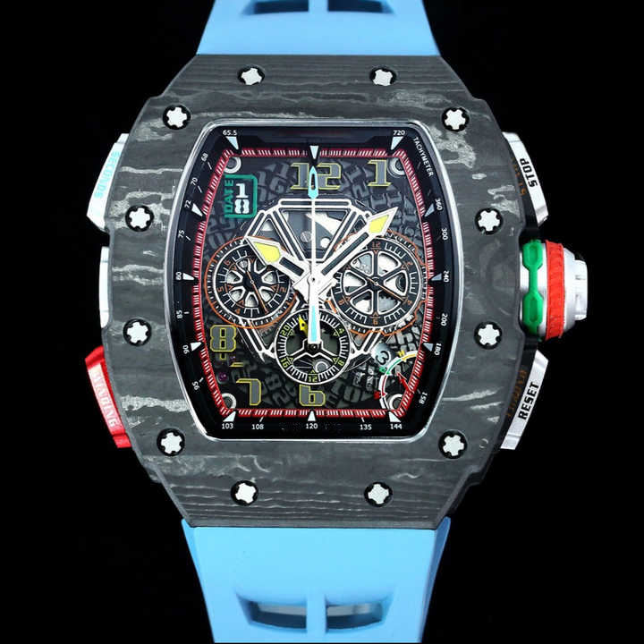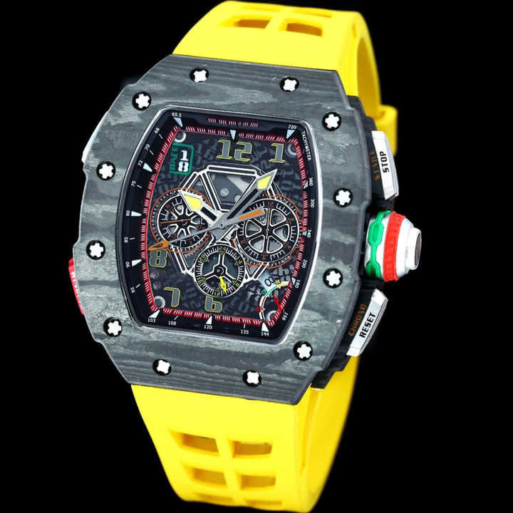 นาฬิกาข้อมือผู้ชาย ยี่ห้อ 2025RM รุ่นใหม่ ขนาด 48 มม. ตัวเรือนคาร์บอนไฟเบอร์ สายยาง ระบบอัตโนมัติเต็มรูปแบบ พร้อมฟังก์ชั่นปลุก หน้าปัดแบบเข็ม