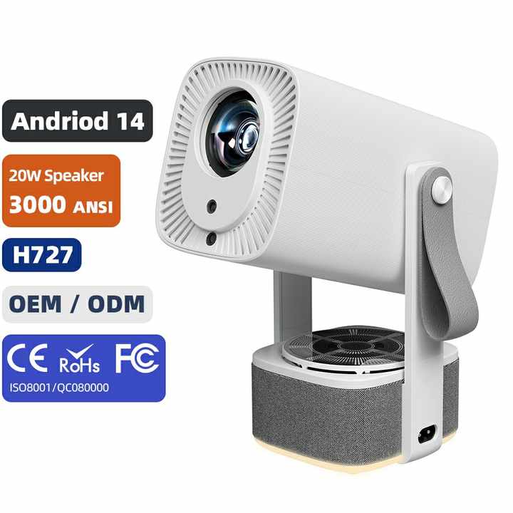 โปรเจคเตอร์ 2 in 1 ระบบแอนดรอยด์ 14 ปี 2026 ความละเอียด 4K หน่วยความจำ 2+32GB รองรับความละเอียด 1080P ลำโพงบลูทูธ 20W พร้อม WIFI มาตรฐาน CE ROHS AUN ไฟ Ambient Light อัจฉริยะ รุ่น A005 Pro