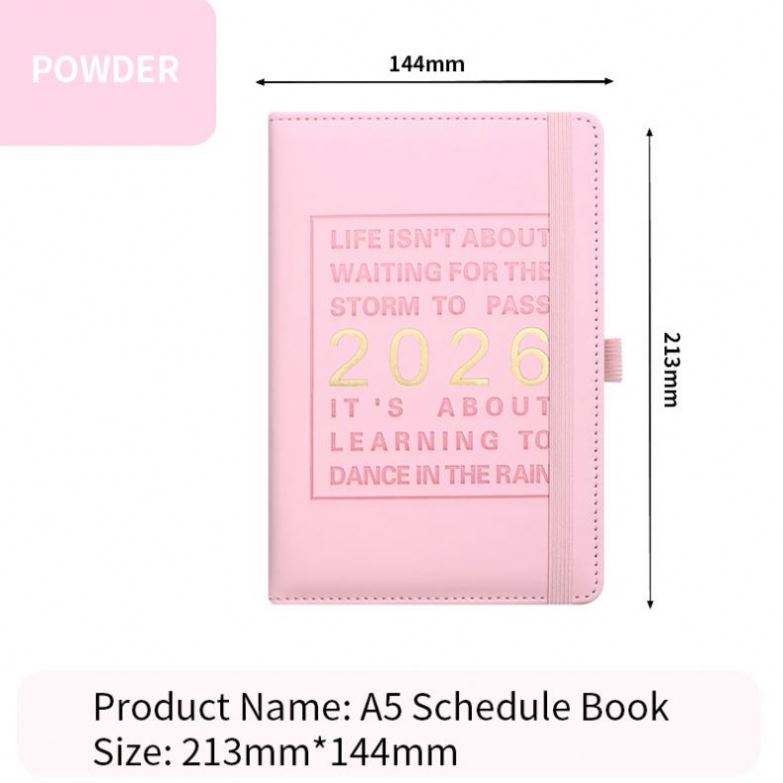 สมุดแพลนเนอร์ภาษาอังกฤษแบบมีสายรัดยางยืดขนาด A5 ปี 2026 คุณภาพส่งออก เหมาะสำหรับเป็นของขวัญองค์กร สมุดบันทึกสำหรับโปรโมชั่น