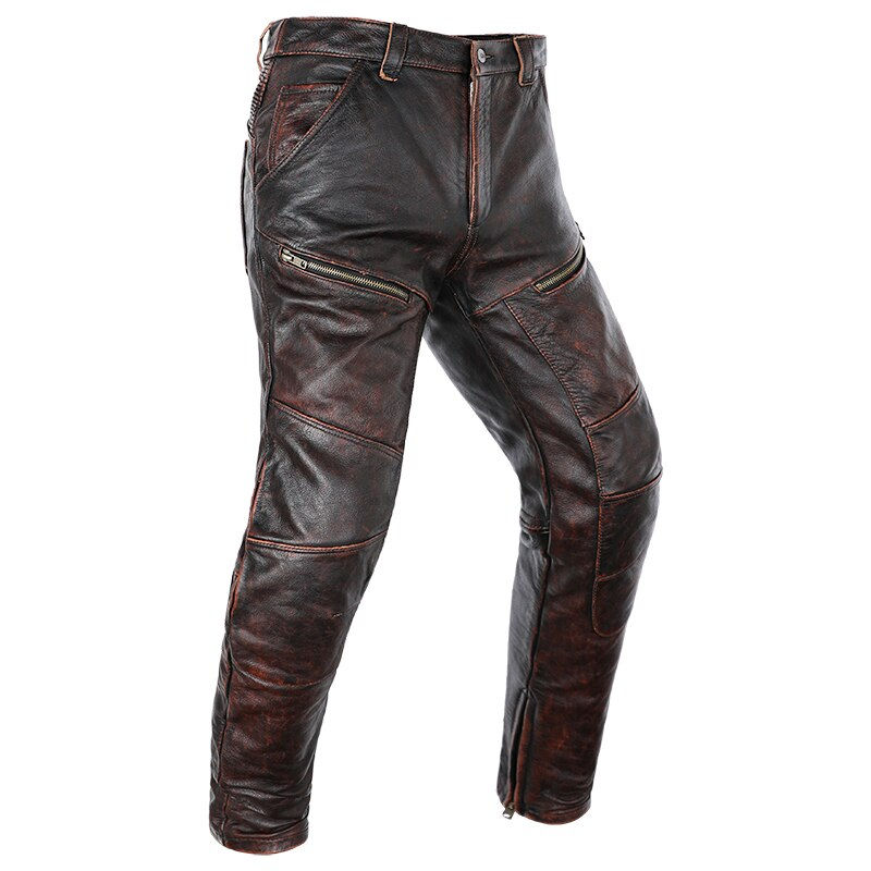 กางเกงหนังวัวแท้สำหรับผู้ชายปี 2026 ป้องกันริ้วรอย ทรงคาร์โก้ แต่งแผ่นหนังเย็บติดกัน กางเกงขายาวหนังแท้สำหรับผู้ชาย