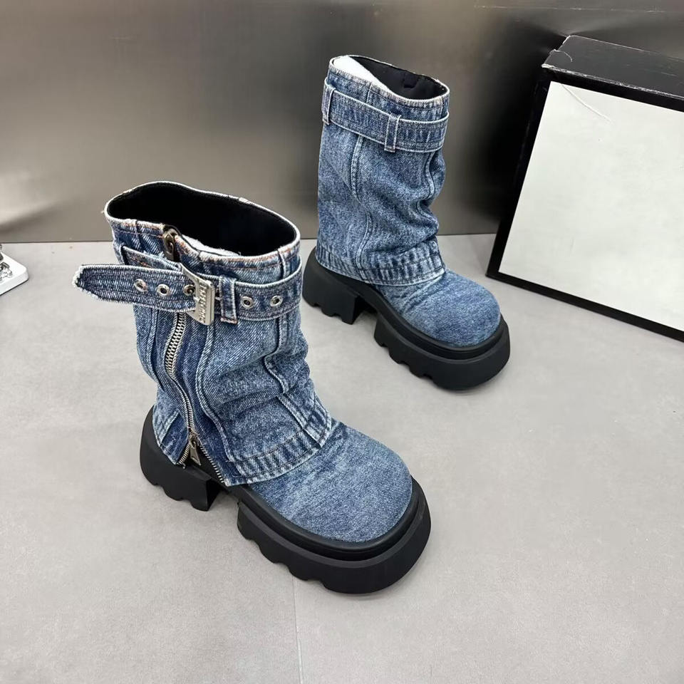 2026 Autumn/Spring Winter New Women's Faux Fur Lined Thickened Snow Boots Rubber Outsole Chunky Heel Toe Height Increasing Warm