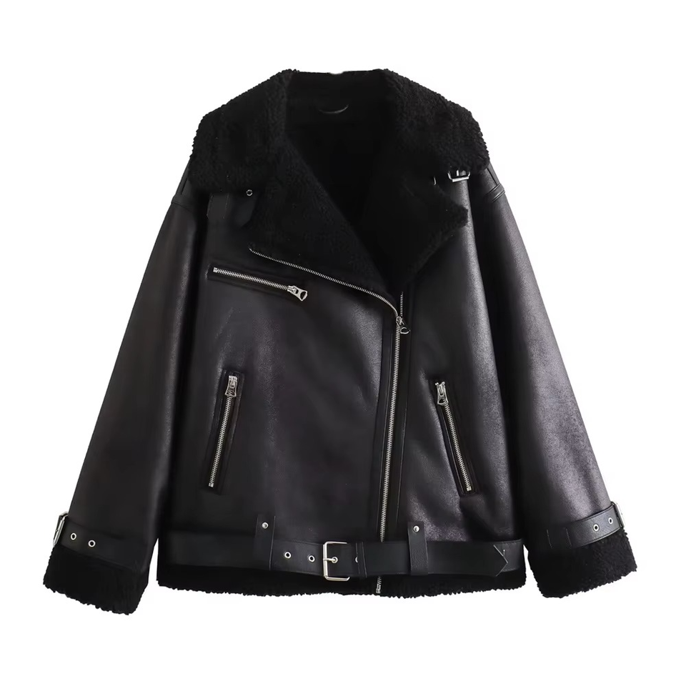 เสื้อแจ็คเก็ตแฟชั่นลำลองสำหรับผู้หญิง ดีไซน์ทันสมัยประจำฤดูใบไม้ร่วง-ฤดูหนาวปี 2026 คอปกขนสัตว์ ผ้าสองด้าน