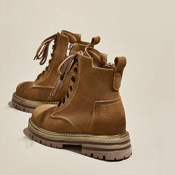 รองเท้าบูทข้อเท้าหนังแท้สไตล์เรโทรสำหรับผู้หญิง ฤดูใบไม้ร่วง-ฤดูหนาว ปี 2026 แบบคาวบอยตะวันตก เสริมส้นเพิ่มความสูง