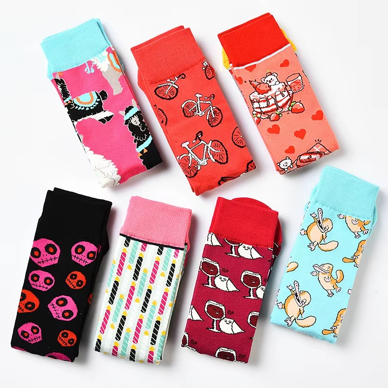 ถุงเท้าผ้าฝ้ายดิจิทัลลายการ์ตูนสัตว์สุดสร้างสรรค์แฟชั่นสนุกๆ คอลเลคชั่นฤดูใบไม้ร่วงและฤดูหนาวปี 2026