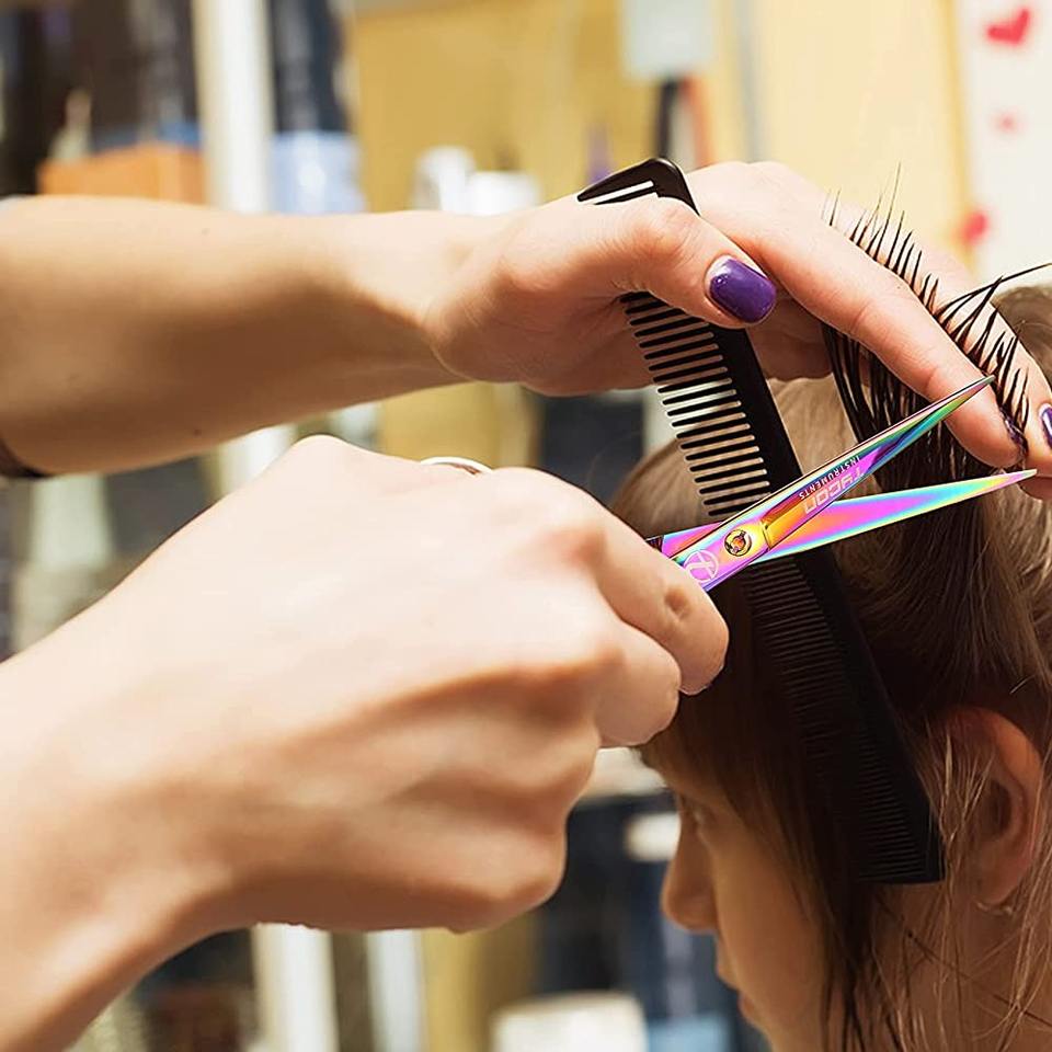 กรรไกรตัดผมปี 2026 สีตามสั่ง สแตนเลสสตีลคมกริบ คุณภาพสูงสำหรับร้านเสริมสวย ออกแบบตามสั่ง