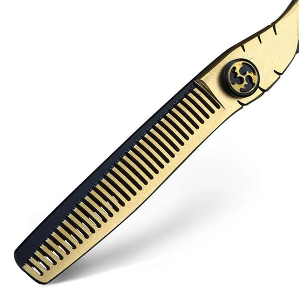 ชุดกรรไกรตัดผมคุณภาพเยี่ยมปี 2026 ผลิตจากเหล็กกล้าไร้สนิมเยอรมัน สีทองดำ สำหรับช่างตัดผม