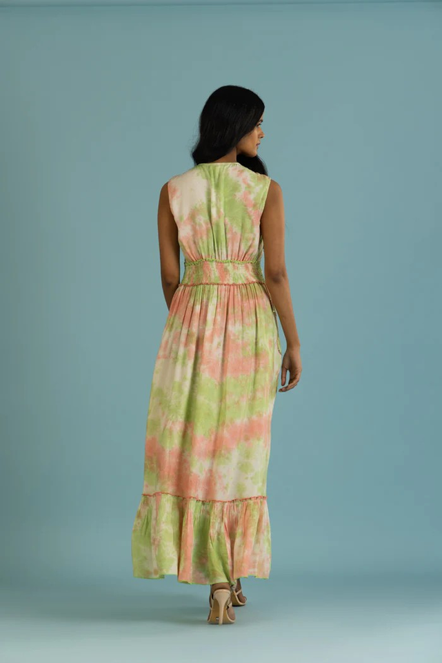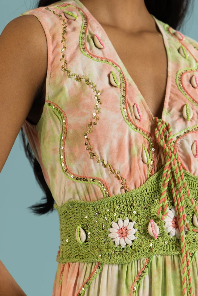 2026 Bohemian Hand Embroidered Tie Dye Floral Print Sleeveless Maxi Dress Crochet Waist Natural 100% Cotton Eco-Friendly Summer