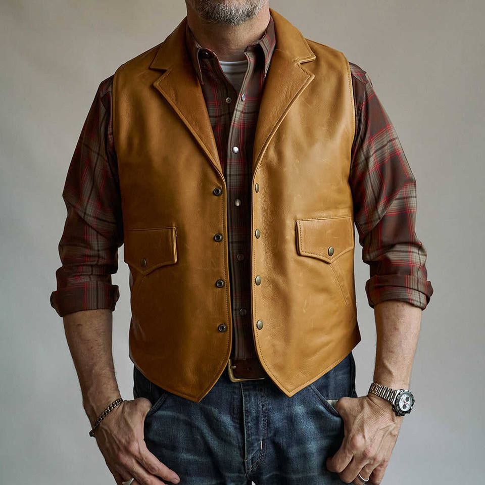 เสื้อกั๊กหนังแท้สำหรับผู้ชาย ปี 2026 ระบายอากาศได้ดี ถักโครเชต์ หนังวัวแท้ วินเทจ สีสั่งทำได้ ขนแกะสำหรับฤดูหนาว เหมาะสำหรับขี่มอเตอร์ไซค์