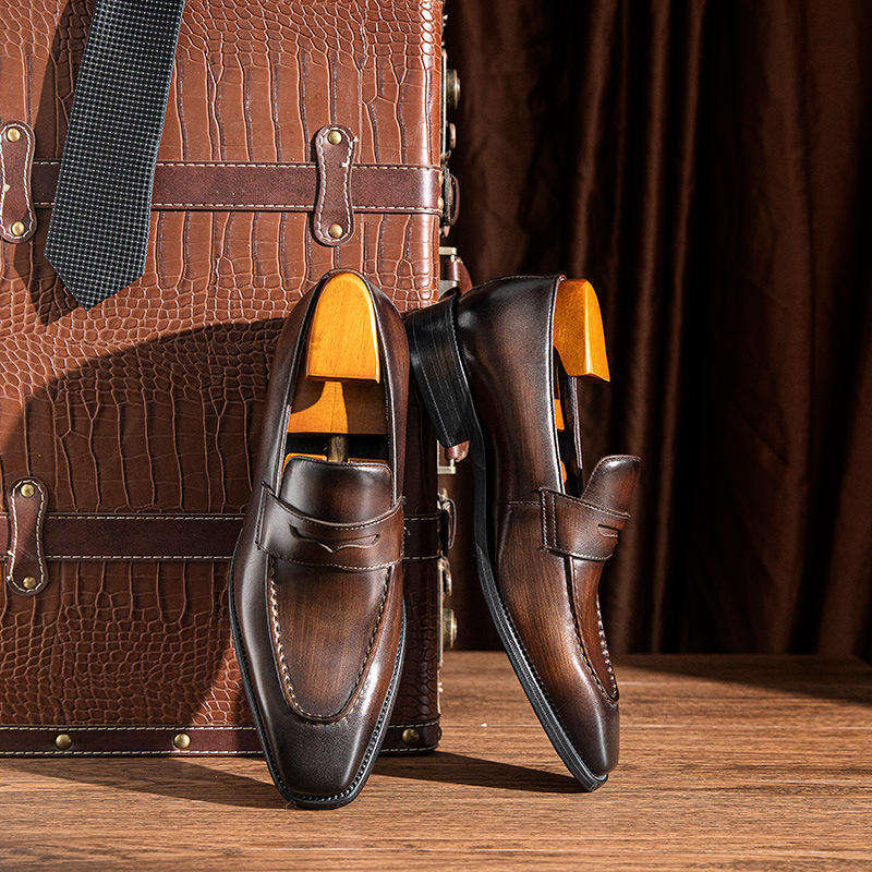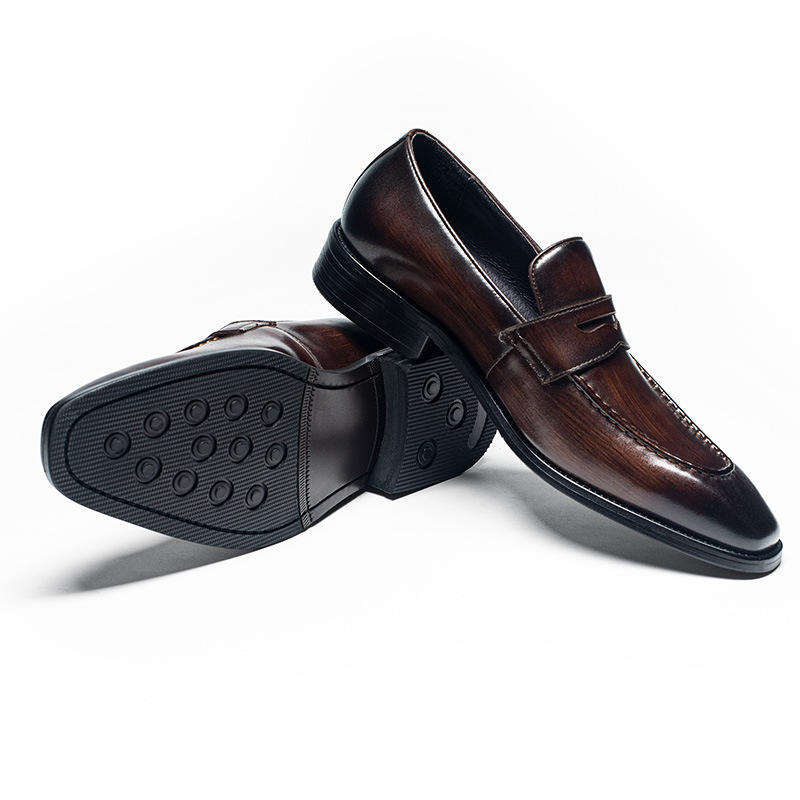 รองเท้าสไตล์ธุรกิจปี 2026 รองเท้าผู้ชาย หนังแท้ ขัดเงาด้วยมือ สำหรับงานทางการ ระบายอากาศได้ดี คุณภาพสูง