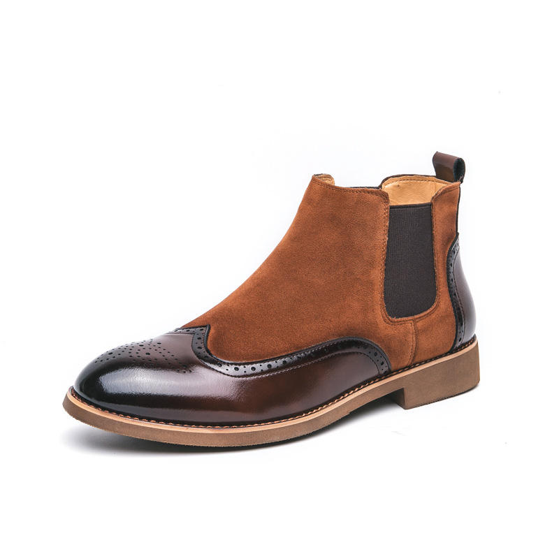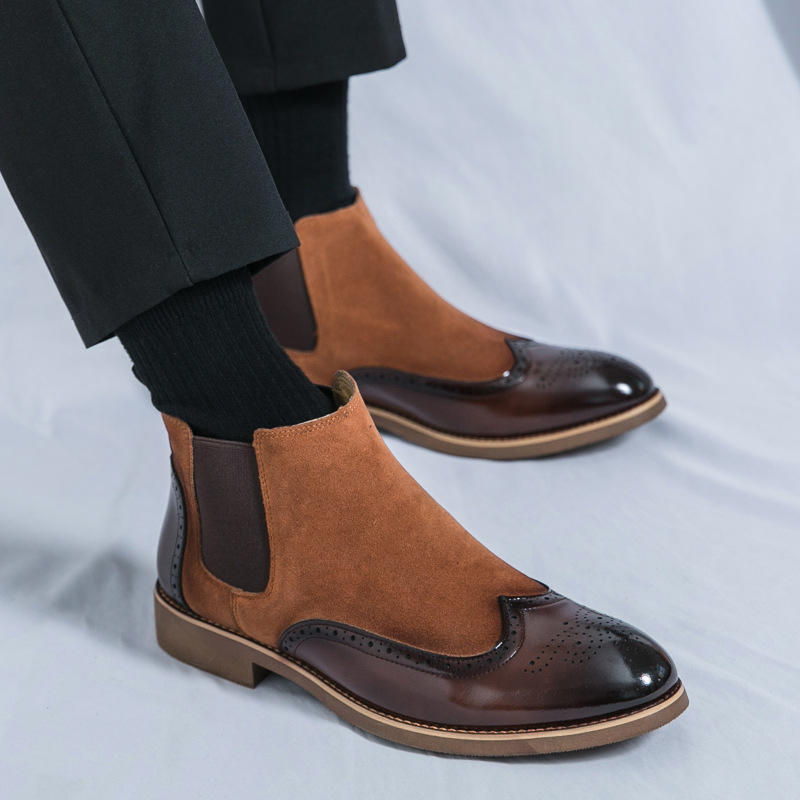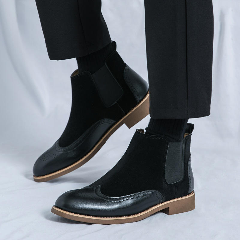 รองเท้าบูทหนังทรงโบรกปลายแหลมแบบแกะสลัก ปี 2026 แฟชั่นทั้งแบบทางการและลำลอง รองเท้าบูทหุ้มข้อสูง