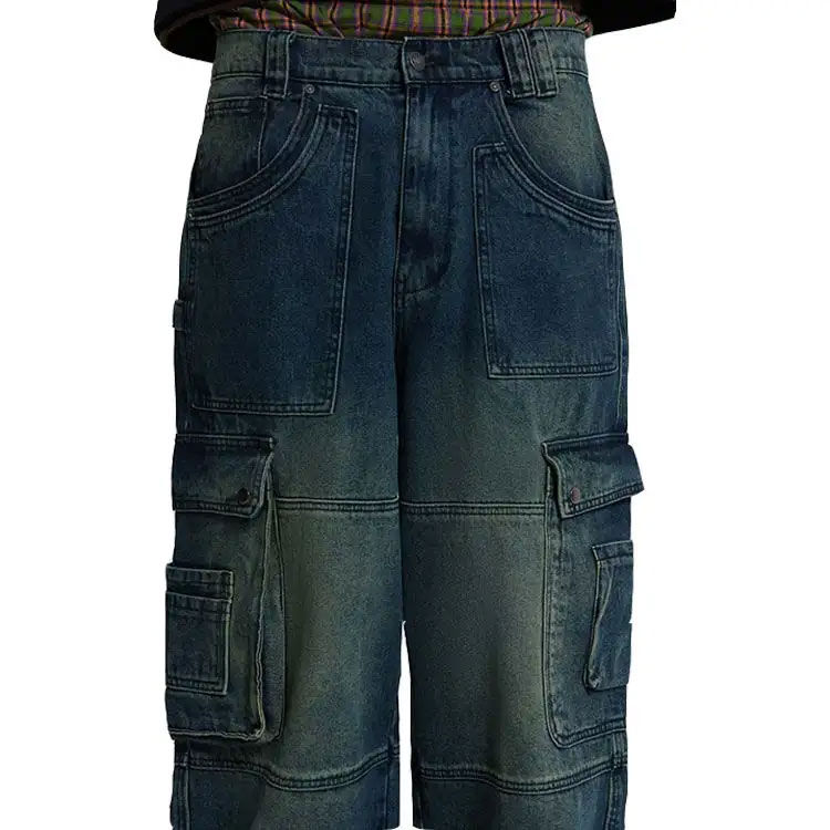 2026 Cheap Rate Men's High Street 6 Pockets Cargo Denim Jean Pants Plus Size Men's Denim Jeans Washed