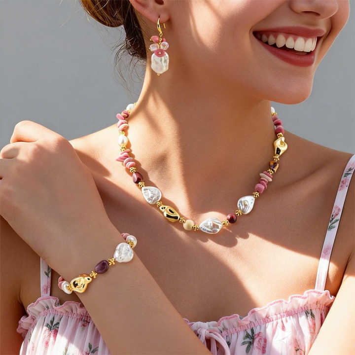 ชุดเครื่องประดับไข่มุกบาโรกสีทองเก๋ไก๋ประดับโรโดไนต์ ปี 2026 สำหรับผู้หญิง ชุดของขวัญสำหรับงานแต่งงาน งานหมั้น และวันครบรอบ สร้อยคอแฟชั่น