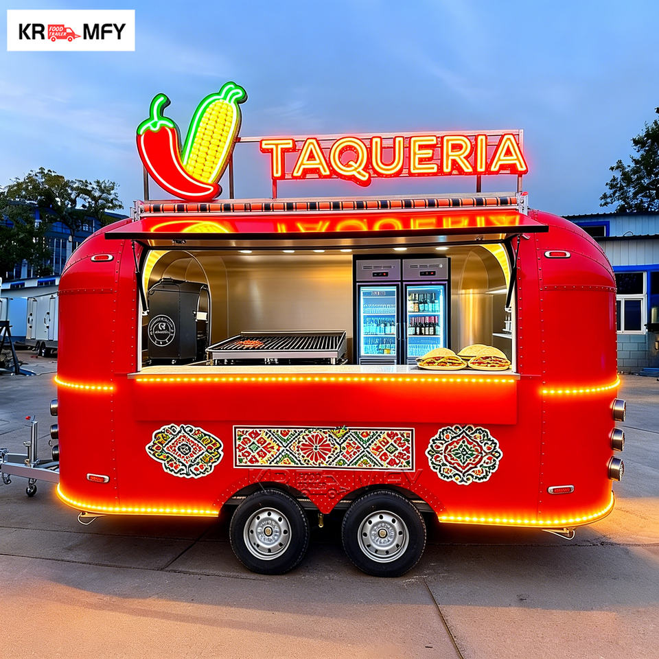 รถขายอาหารเคลื่อนที่อเนกประสงค์ ปี 2026 ครัวครบชุด ขนาดเล็ก สแตนเลส ไฟเบอร์กลาส รถพ่วงขนาดเล็ก รถขายขนมวาฟเฟิล อาหารข้างทาง
