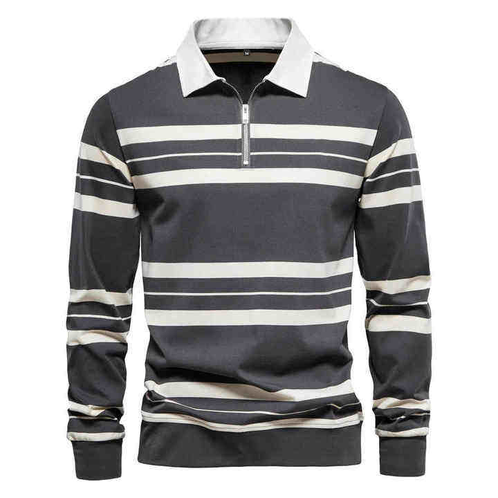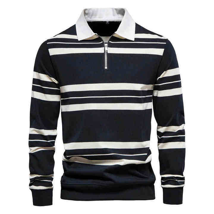 เสื้อโปโลผ้าฝ้ายปี 2026 สำหรับผู้ชาย แขนยาว ไซส์ใหญ่ ลายทางใหม่ สไตล์เบสบอล ระบายอากาศได้ดี เสื้อโปโลผู้ชาย