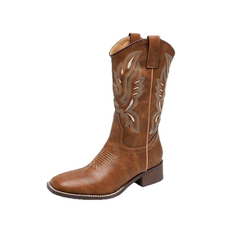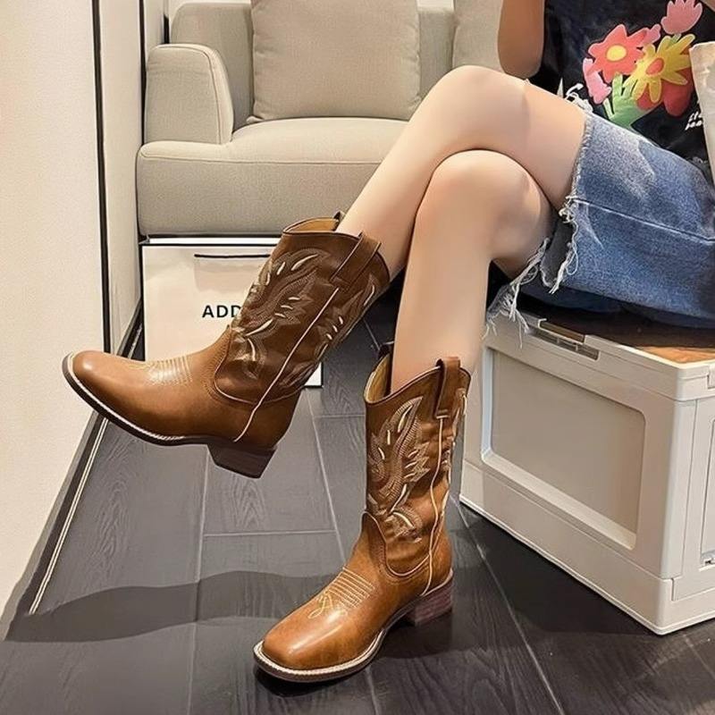 รองเท้าบูทเชลซีหนังวัวแท้สำหรับผู้หญิง รุ่นฤดูใบไม้ร่วงปี 2026 ส้นเหลี่ยม สวมแบบสลิปออน รุ่นใหม่