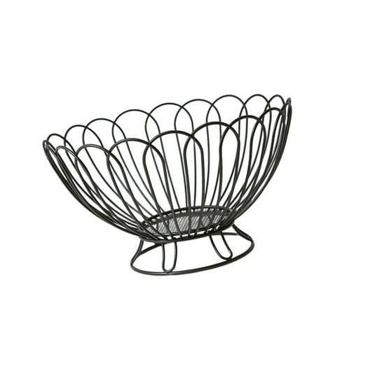 ตะกร้าเก็บผลไม้และขนมปัง ดีไซน์สร้างสรรค์ ปี 2026 คุณภาพสูง ผลิตจากโลหะเคลือบสีดำด้วยวิธีพ่นสีฝุ่น พร้อมฐานไม้