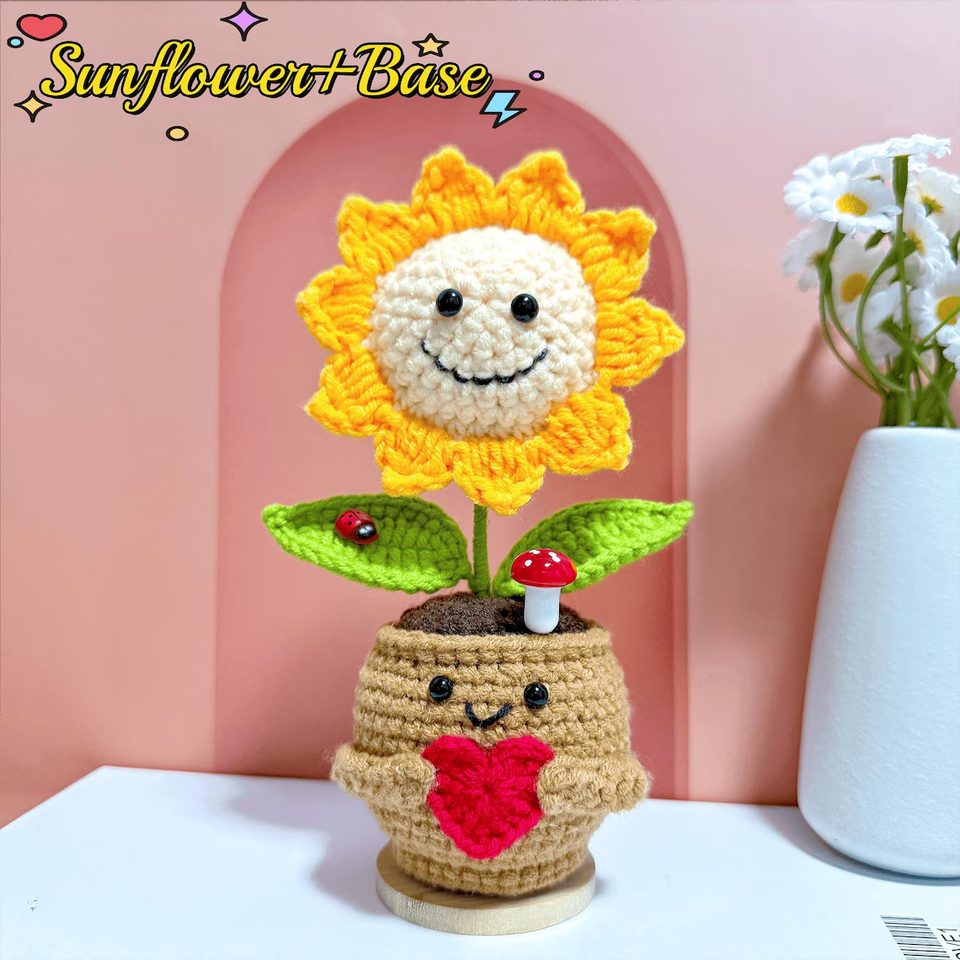 ต้นทานตะวันถักโครเชต์รูปหัวใจพร้อมกระถาง ปี 2026 ต้นไม้เสริมพลังบวก ของขวัญรับปริญญา ขอบคุณที่ช่วยให้ฉันเติบโต