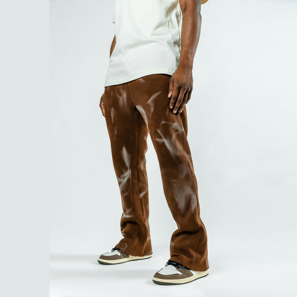 กางเกงวอร์มผู้ชายทรงขาบานแบบฟลีซ รุ่นคัสตอม แอซิดวอช ปี 2026 สไตล์สตรีทแวร์ลำลอง น้ำหนักเบา ขากว้าง