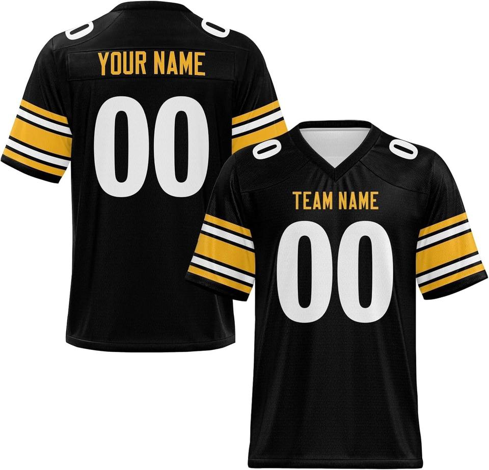 เสื้ออเมริกันฟุตบอลแบบกำหนดเองปี 2026 พิมพ์ลายด้วยความร้อน แห้งเร็ว 100% โพลีเอสเตอร์ แขนสั้น สีตามสั่ง โลโก้ทีม หมายเลข