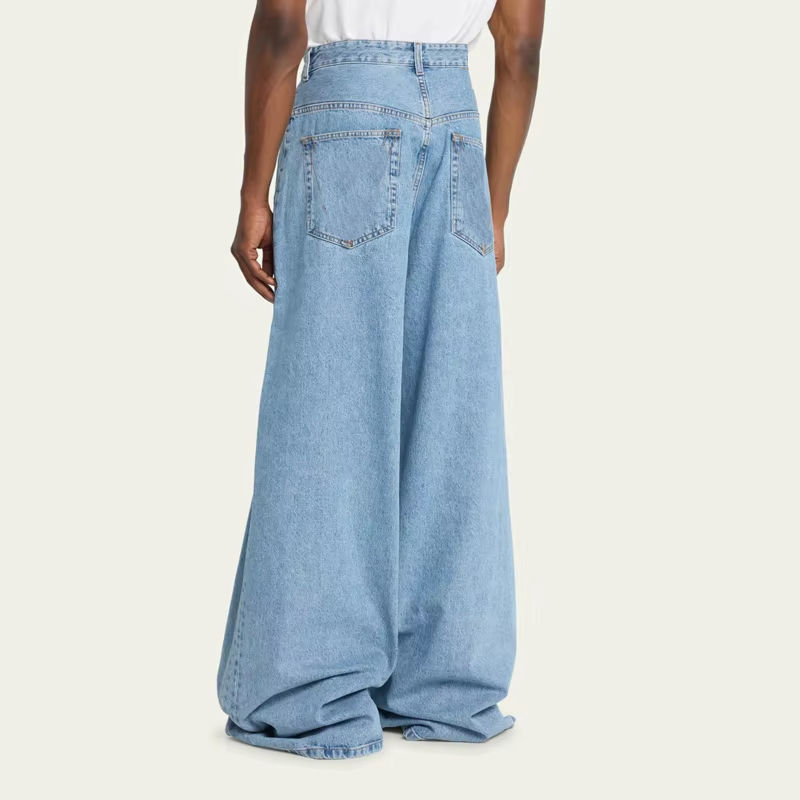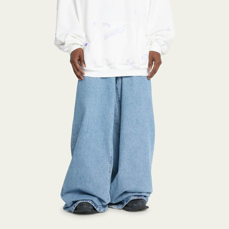 กางเกงยีนส์เดนิมแบบสั่งทำปี 2026 สำหรับผู้ชาย แต่งโลโก้คริสตัล ทรงแบ็กกี้ ห้ากระเป๋า ความยาวเต็มตัว ทรงหลวมพิเศษ ผ้ายีนส์ฟอก สำหรับทุกเพศ