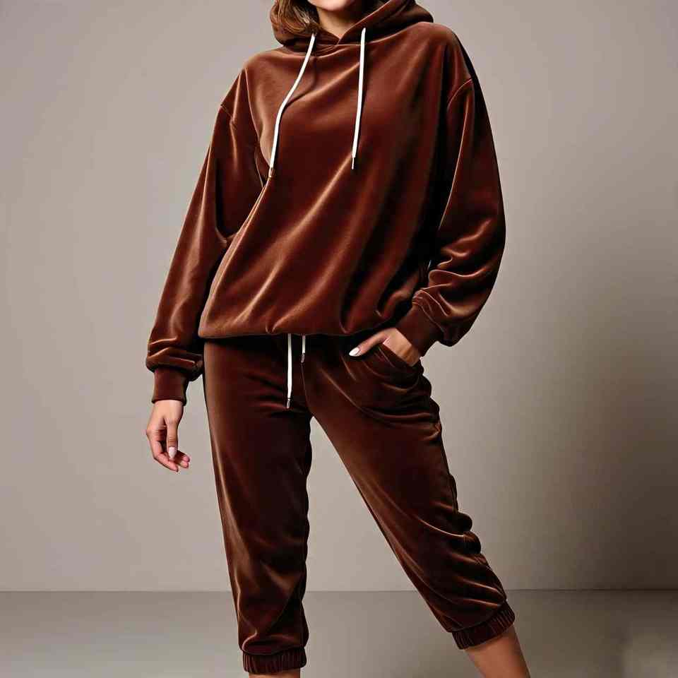 ชุดวอร์มลำลองผ้าฟลีซแบบสวมใส่สบาย 2 ชิ้น ประดับโลโก้เพชรเทียม รุ่นวินเทอร์ 2026 สำหรับผู้หญิง