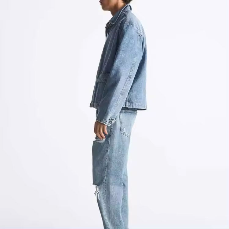 แจ็คเก็ตยีนส์มอเตอร์ไซค์สไตล์เรโทรสำหรับผู้ชายคุณภาพสูงแบบสั่งทำปี 2026 สไตล์ไฮสตรีท ผลิตจากวัสดุรีไซเคิล โรงงานขายส่งแบบ OEM