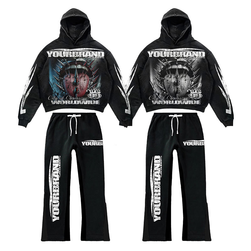 เสื้อฮู้ดดี้สตรีทแวร์คุณภาพสูงแบบสั่งทำปี 2026 แบบซิป วินเทจ สองชั้น ล้างสีแบบแอซิด ฟอกสีซีดแบบซันเฟด แต่งขาดแบบดิสเทรส มีกระเป๋า