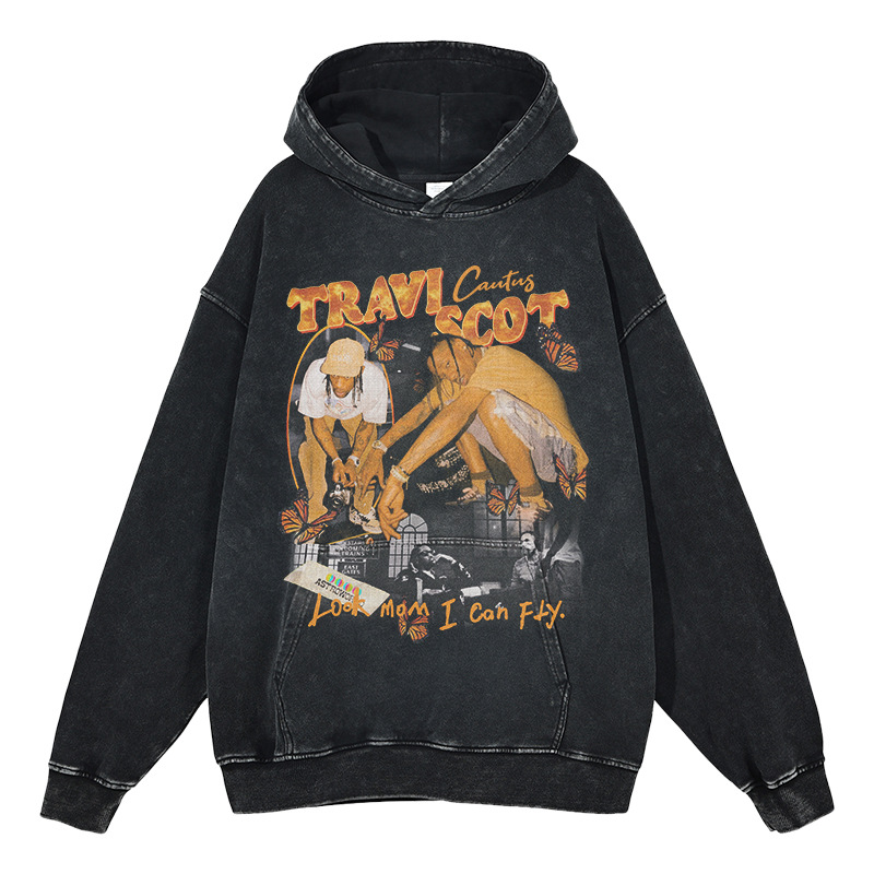 2026 Custom Logo Cartoon Men's Acid Wash Printed Winter Woven Anti-Pilling Hoodie Loose Fit 350g Digital Printing Anime Hoodie