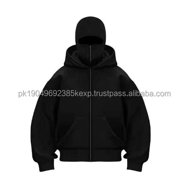 เสื้อฮู้ดดี้บุรุษแบบมีฮู้ดคู่ ปักโลโก้ตามสั่ง ปี 2026 ผ้าสองชั้น ไซส์ใหญ่พิเศษ หนานุ่ม ซิปยาวเต็มตัว พร้อมฮู้ดคลุมหน้าแบบบาลาคลาวา ปี 2026