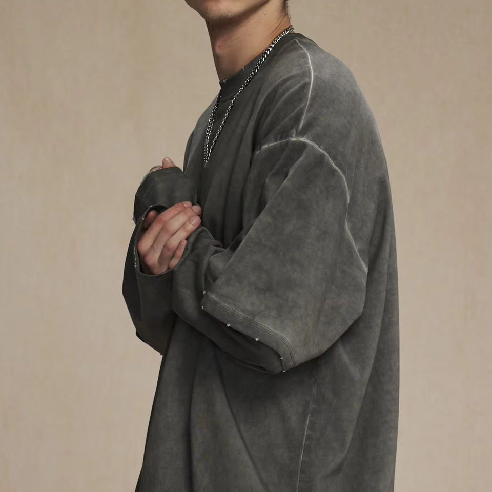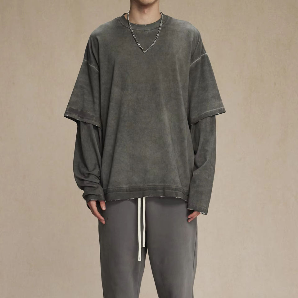 เสื้อยืดแขนยาวสองชั้น ผ้าฟอกสีแบบแอซิดวอช สไตล์ลำลอง สั่งทำพิเศษ