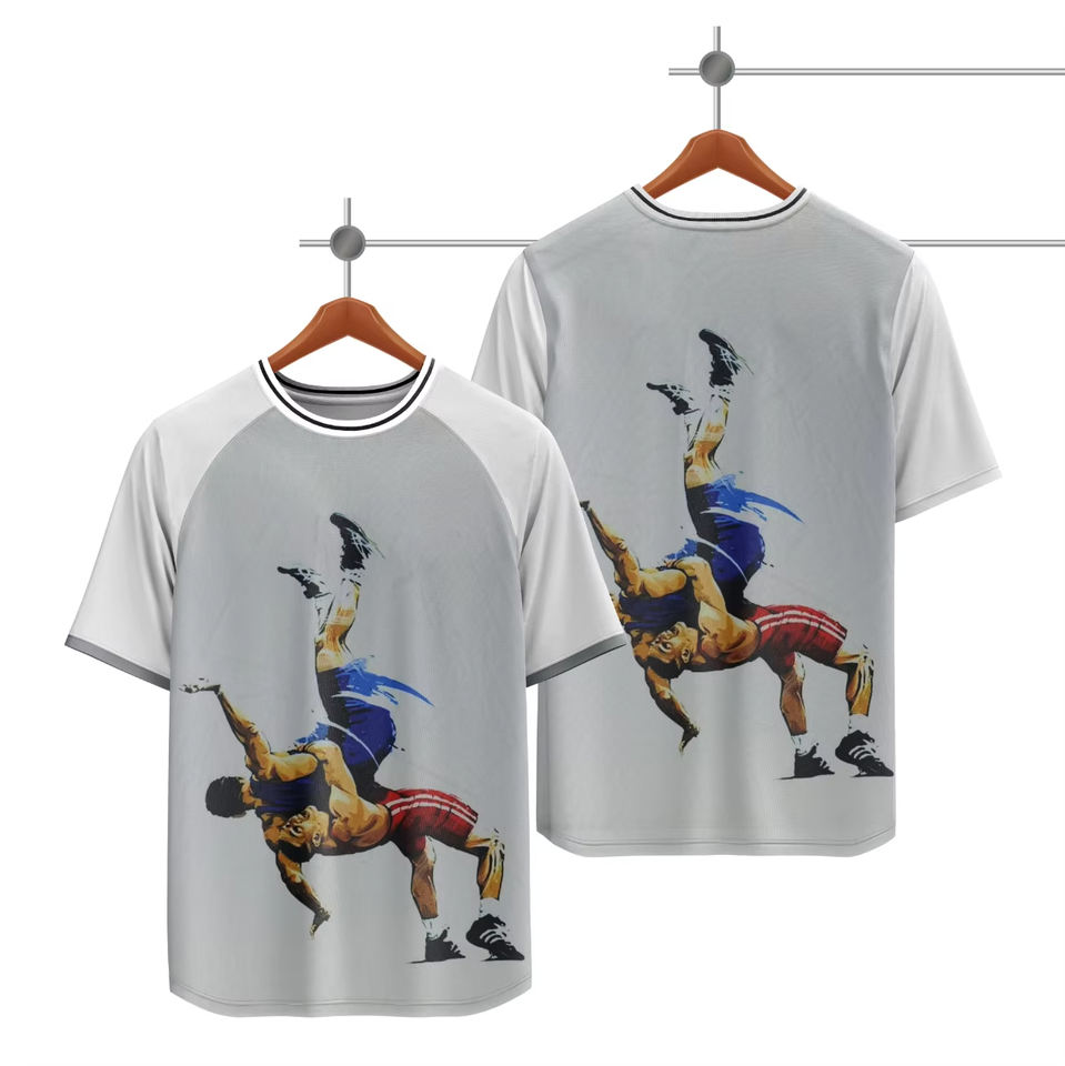 ชุดยูนิฟอร์มศิลปะการต่อสู้ชายแบบสั่งทำปี 2026 ผ้าถักระบายอากาศได้ดี โพลีเอสเตอร์ 100% เสื้อยืดและกางเกงขาสั้นสำหรับนักมวยปล้ำ พิมพ์ลายดิจิทัล นานาชาติ