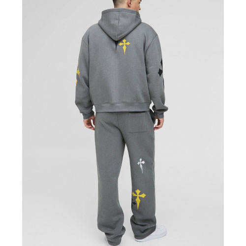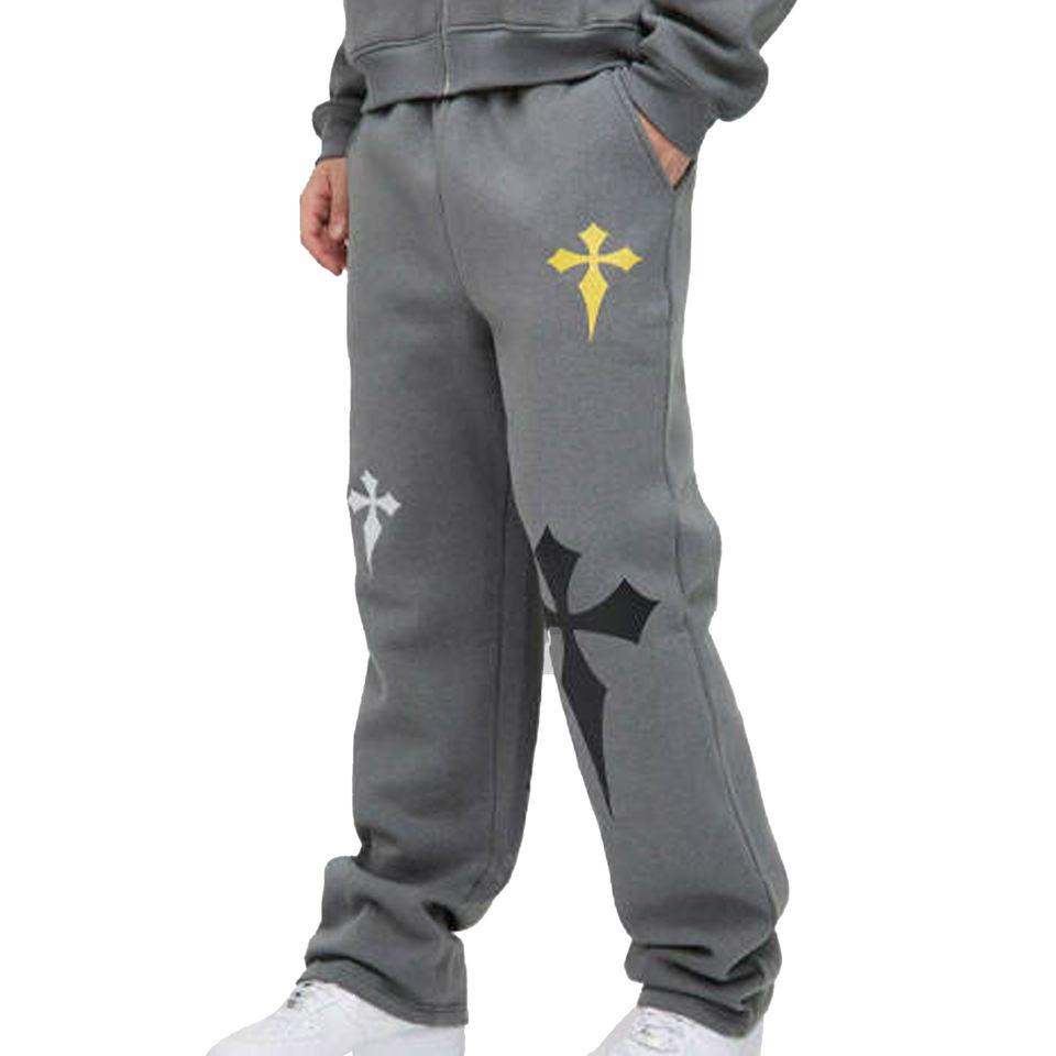 กางเกงวอร์มผ้าฝ้ายฟลีซปักลายหนาแบบมีกระเป๋าหลายช่องทรงตรงเอวกลางสำหรับผู้ชายรุ่นปี 2026 สไตล์ลำลอง