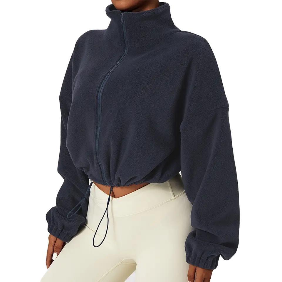เสื้อฮู้ดกันหนาวโอเวอร์ไซส์สำหรับผู้หญิงเสื้อครอปแบบมีซิปเสื้อเอวลอยพร้อมเชือกรูดเสื้อผ้าลำลองสำหรับฤดูหนาวกำหนดเอง2026
