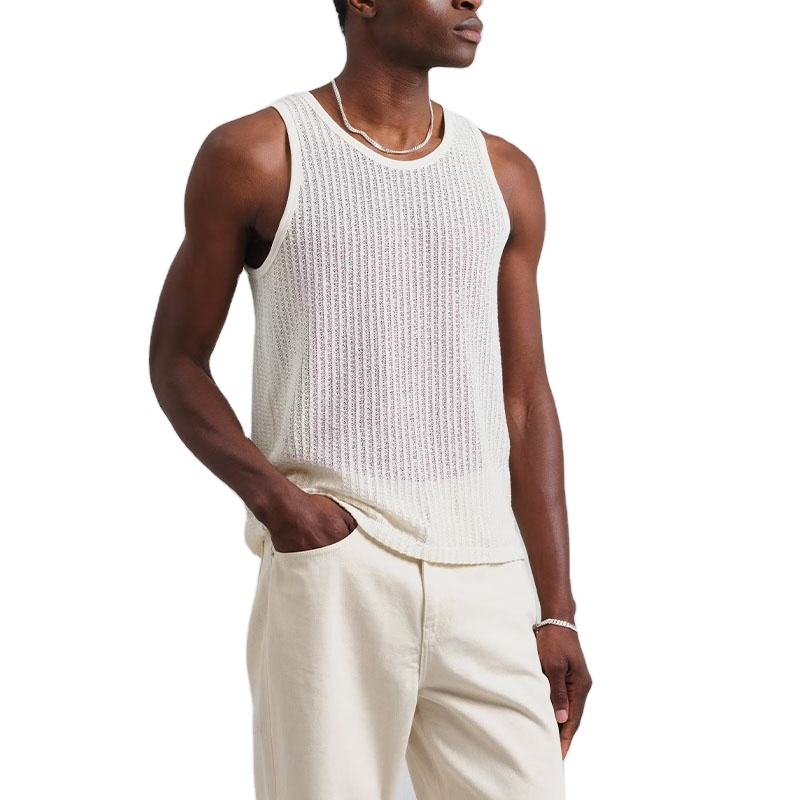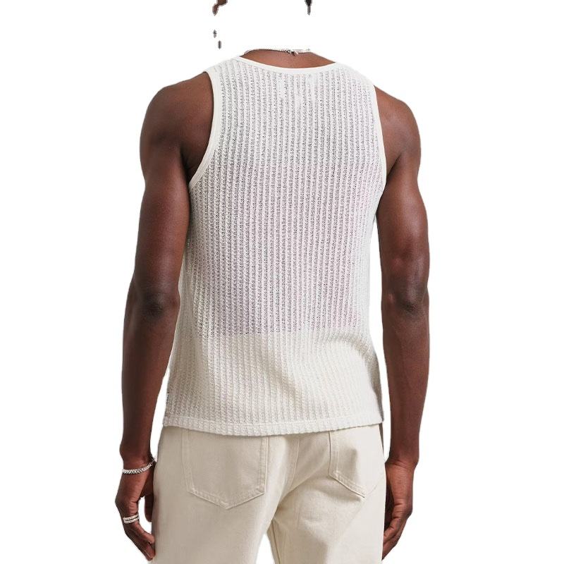 เสื้อกล้ามตาข่ายผ้าฝ้ายระบายอากาศพิมพ์ลายตามสั่งปี 2026 สำหรับผู้ชาย เสื้อผ้ากีฬาออกกำลังกายฤดูร้อน เสื้อผ้าลำลองติดกระดุมสำหรับผู้ชาย