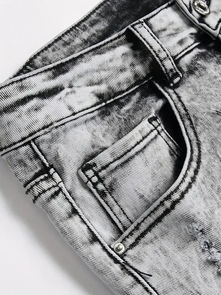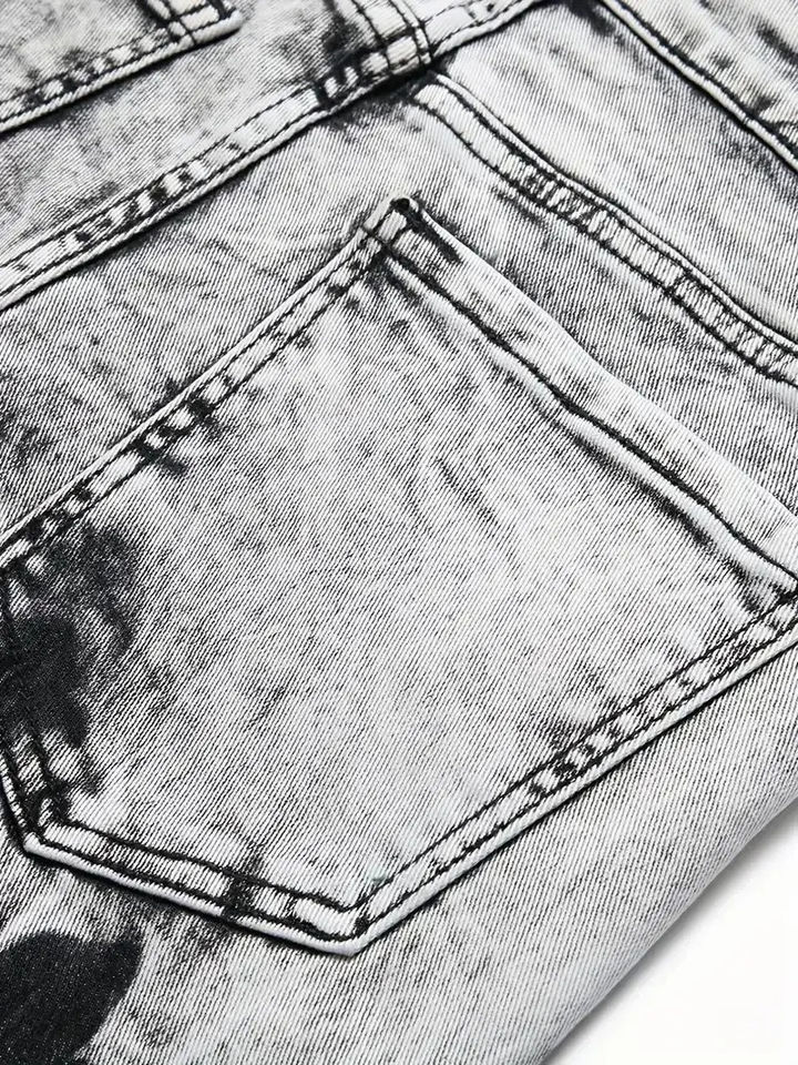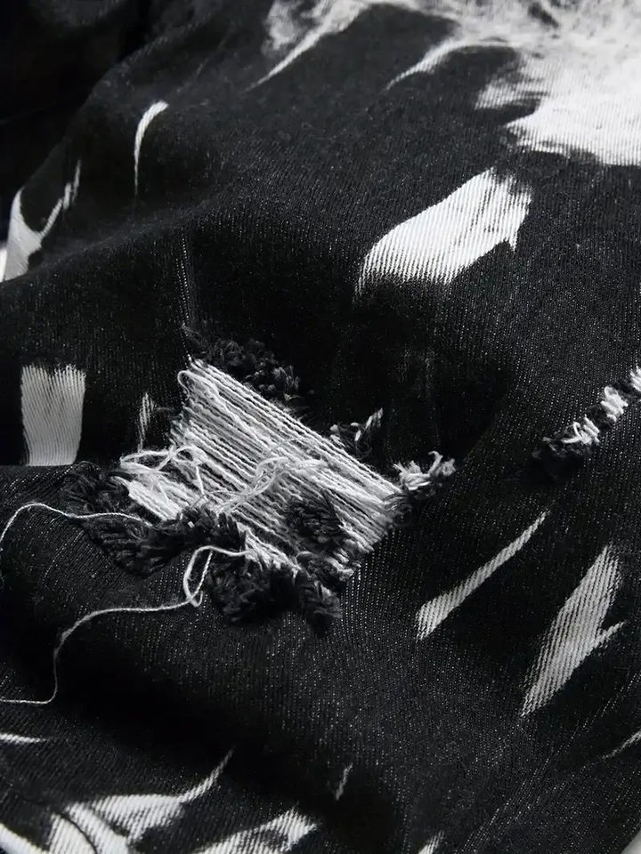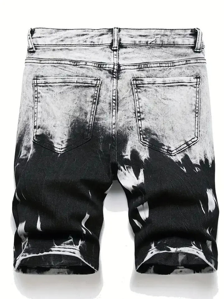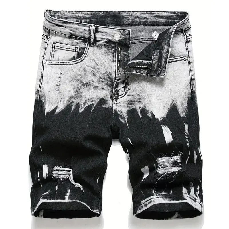 กางเกงยีนส์ขาสั้นผู้ชายลายพิมพ์สไตล์ฮิปฮอป ปี 2026 ผ้าฝ้าย 100% คุณภาพพรีเมียม ลุคดิสเทรส ซักฟอก