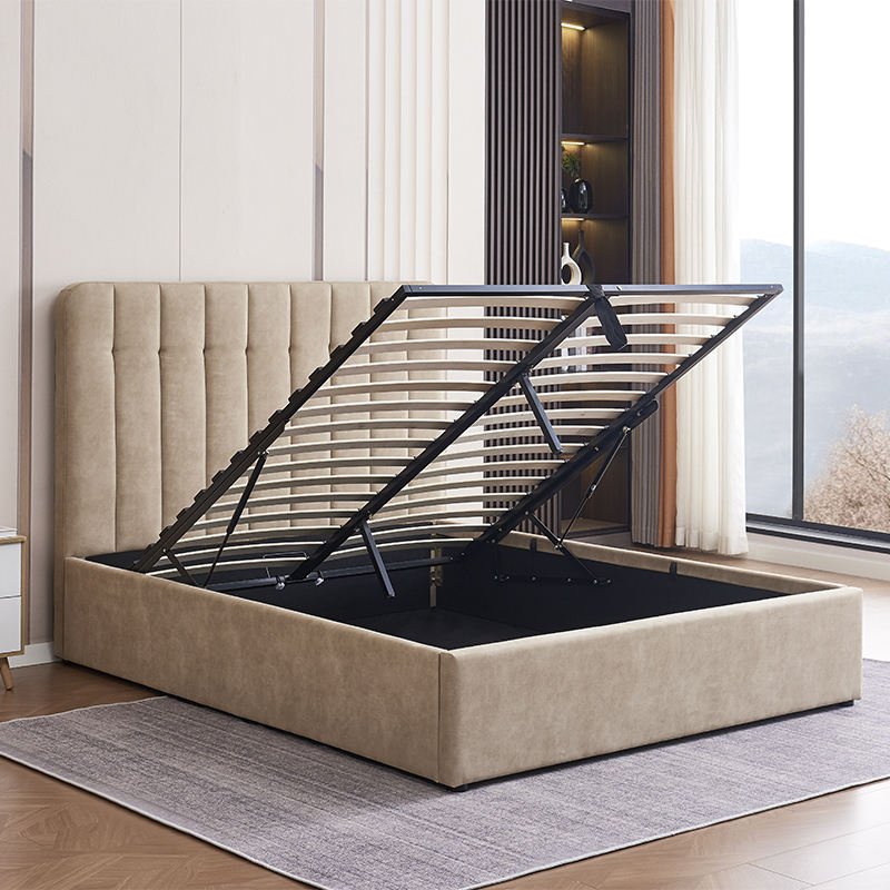 เตียงหุ้มผ้าสั่งทำพิเศษปี 2026 ผ้าเนื้อนุ่ม ขนาดฟูลไซส์/ควีนไซส์ สไตล์โบราณหรูหรา ทันสมัย ขนาดคิงไซส์ โครงเตียงไม้พร้อมที่เก็บของ
