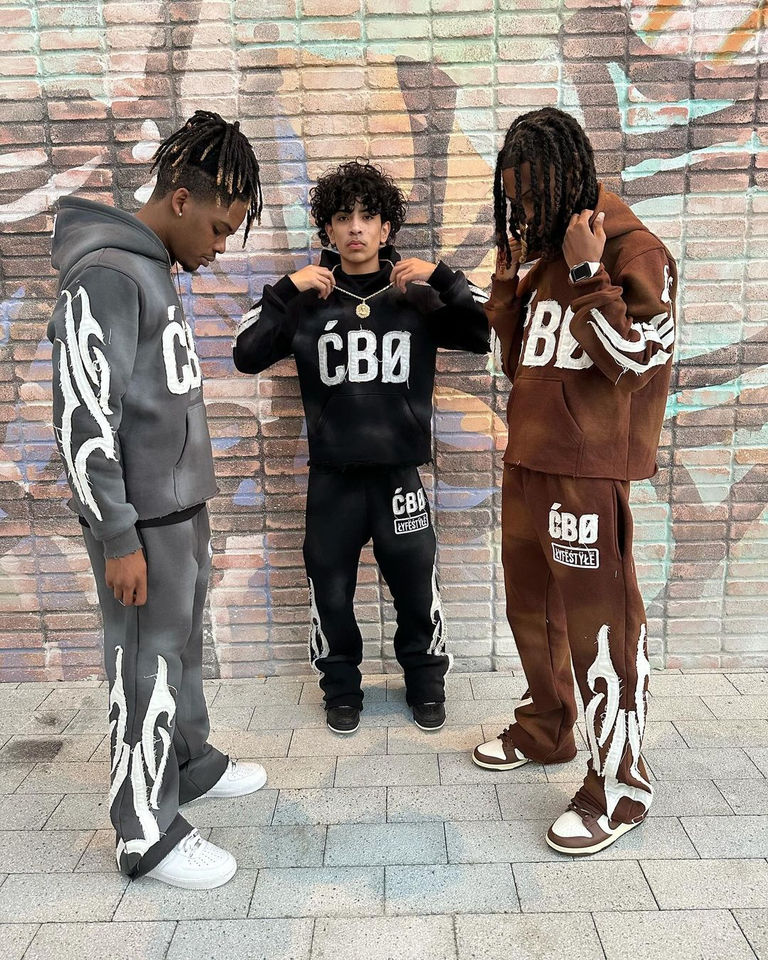 เสื้อฮู้ดดี้และกางเกงวอร์มไซส์ใหญ่พิเศษสำหรับผู้ชายปี 2026 แบบสั่งทำขายส่ง ตกแต่งด้วยงานปักลายขาดๆ แบบดิสเทรส