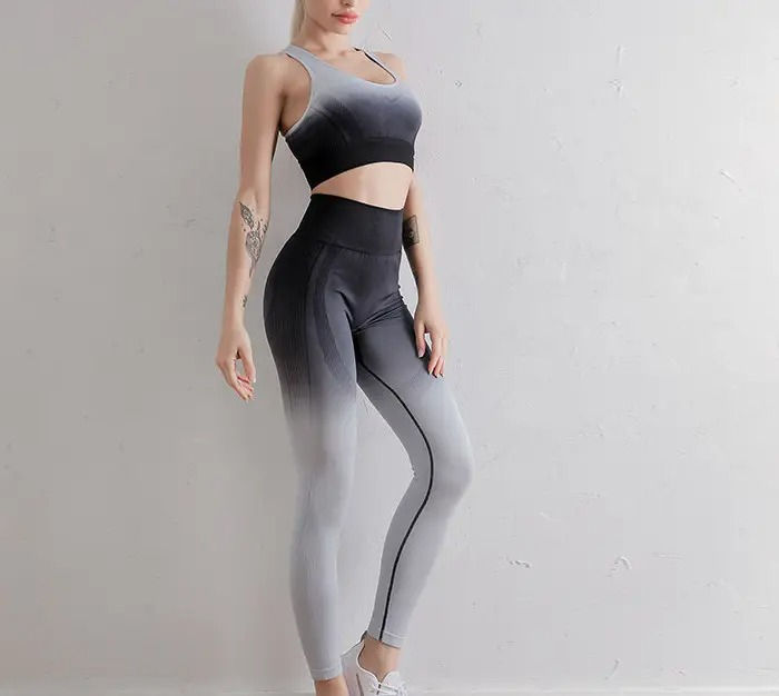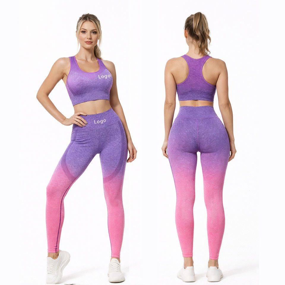 ชุดออกกำลังกายโยคะและเล่นกีฬาสำหรับผู้หญิงปี 2026 เสื้อชั้นในกีฬาไร้ตะเข็บและกางเกงเลกกิ้งเอวสูงแบบไล่เฉดสี