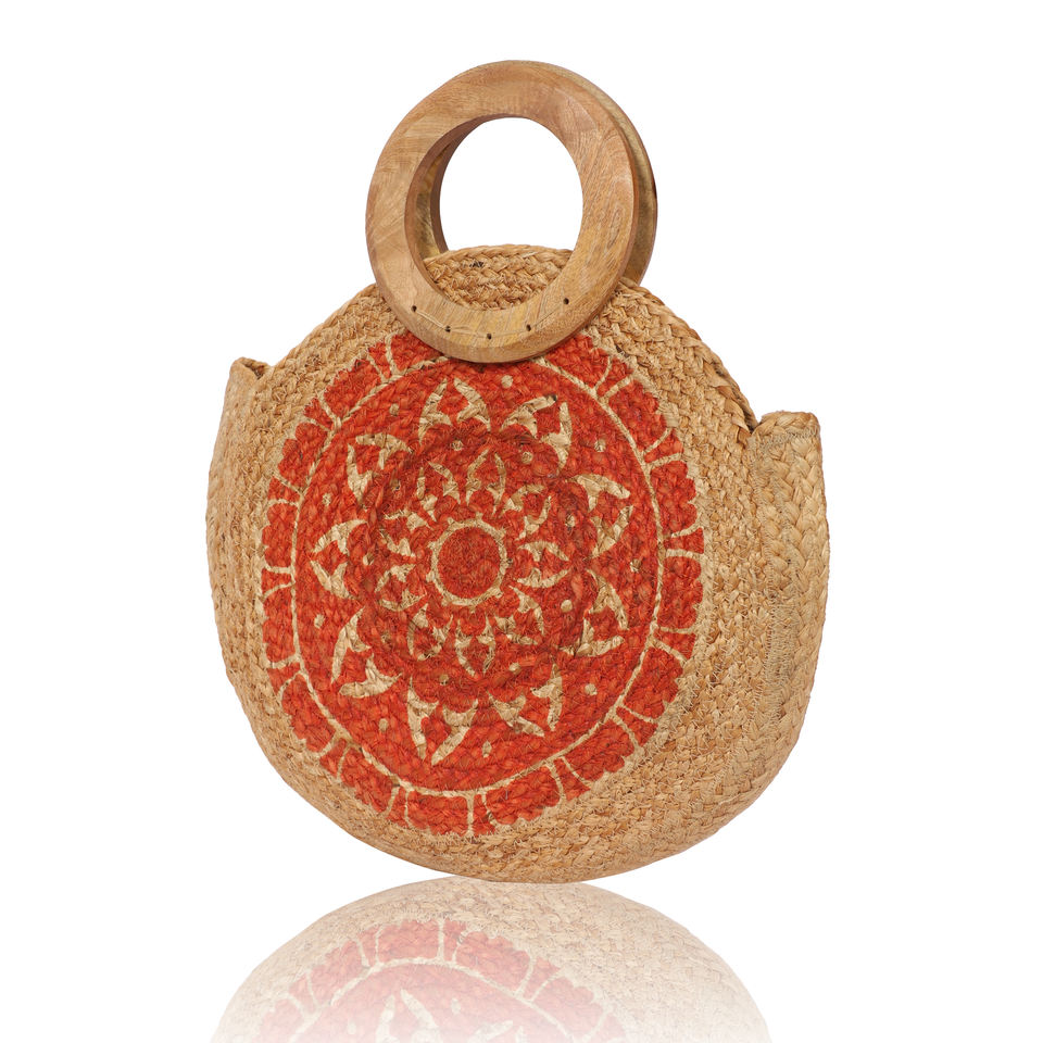 กระเป๋าถือสะพายข้างผู้หญิงสไตล์โบฮีเมียน ปี 2026 ทำจากผ้าปอกระเจา พร้อมหูจับไม้ ปิดแบบเปิด ใช้ได้ที่ชายหาด พร้อมโลโก้ กระเป๋าสะพายข้างผู้หญิงสุดฮิต