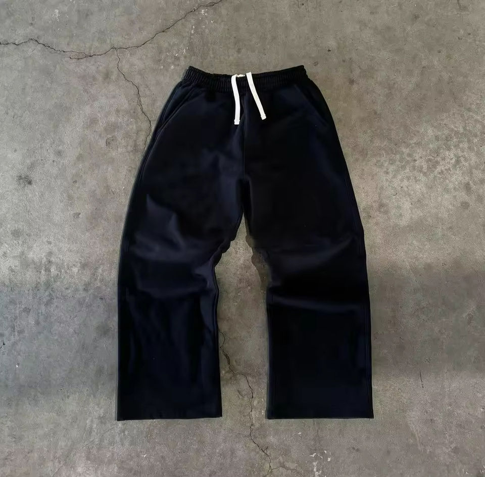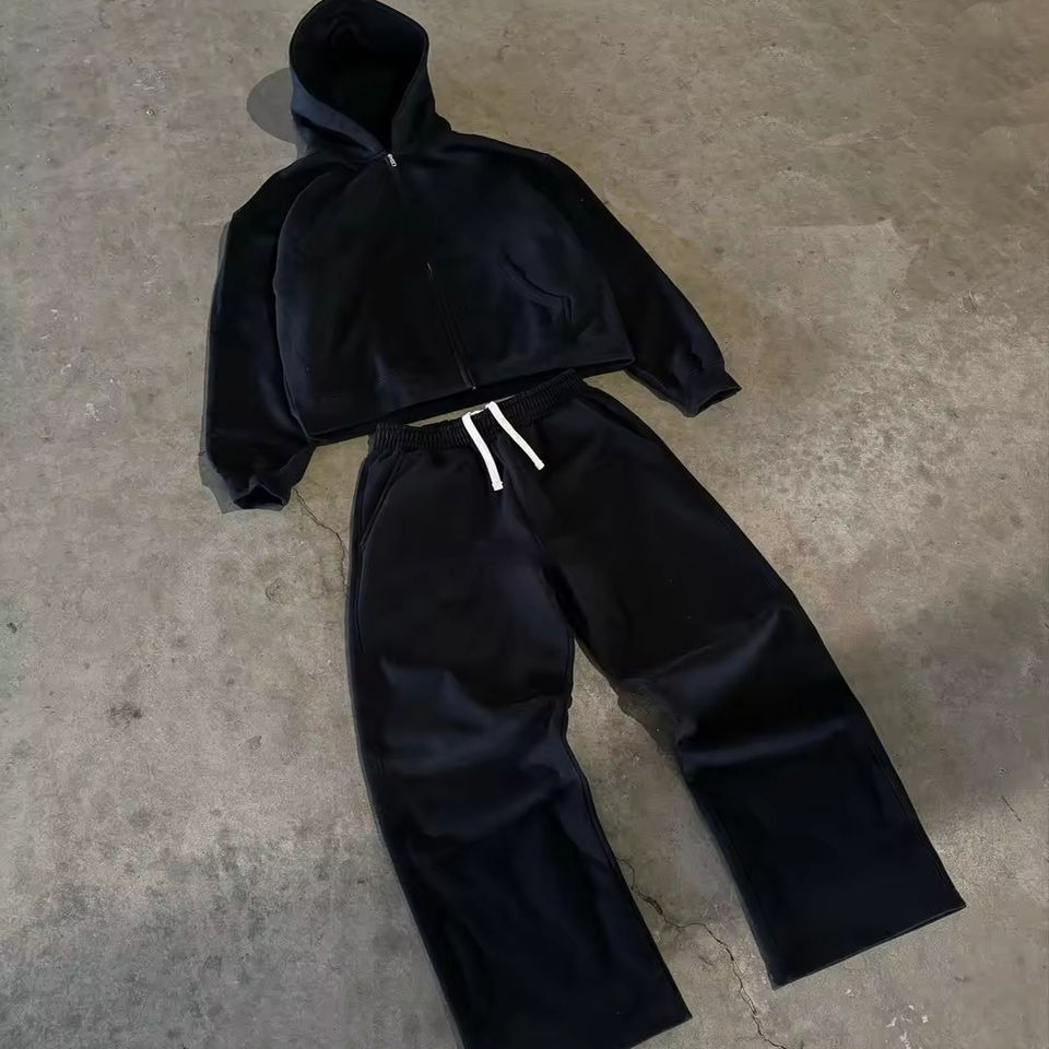 ชุดวอร์มวินเทจผู้ชายแบบสั่งทำพิเศษ ปี 2026 ทรงโอเวอร์ไซส์ ผ้าฝ้าย 100% ล้างสีแบบซันเฟด ชุดฮู้ดดี้และกางเกงขายาวทรงบาน สไตล์ลำลองแบบทอ